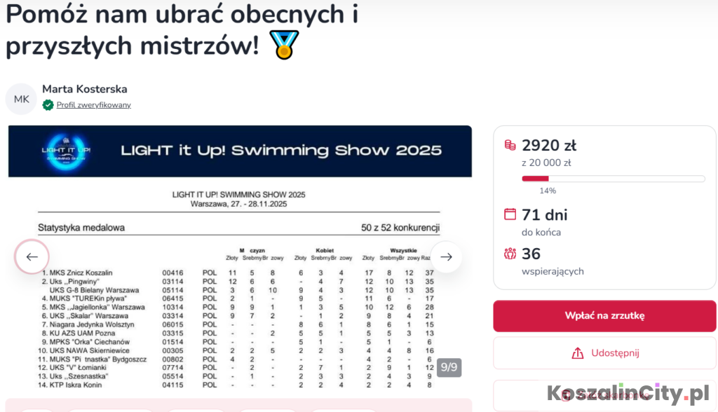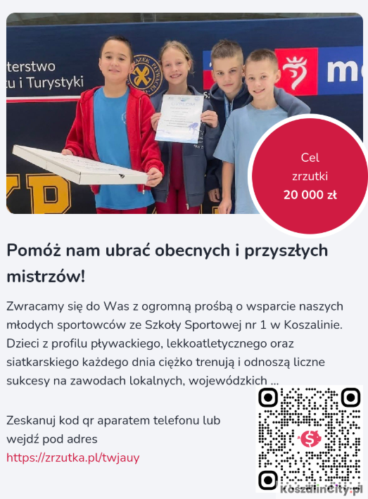 Każdy mieszkaniec Koszalina może stać się częścią sukcesu młodych sportowów. Liczy się każda złotówka – to z małych wpłat buduje się wielkie projekty.